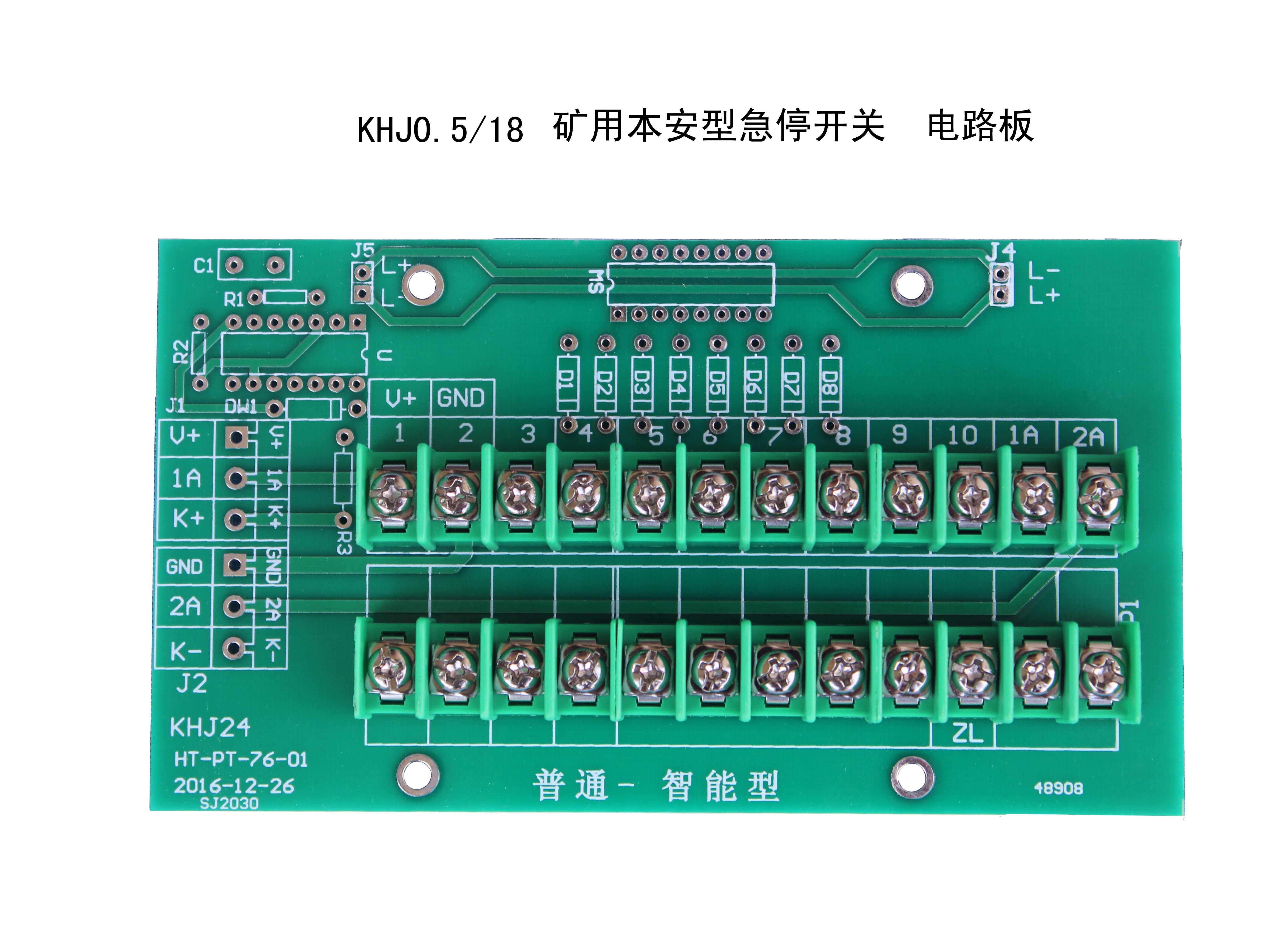 1.1 KHJ0.5/18礦用本安型急停開關(guān)(以下簡稱急停開關(guān))適用于具有爆炸性混合氣體的危險場所、露天煤礦、選煤廠等工作場所,本急停開關(guān)主要用于煤礦井下帶式輸送機配套電控裝置中沿線停車用,也可作為沿線本安電纜接線盒使用。該產(chǎn)品也可用于鋼鐵廠、水泥廠、火力發(fā)電廠和港口碼頭等帶式輸送機沿線停車。